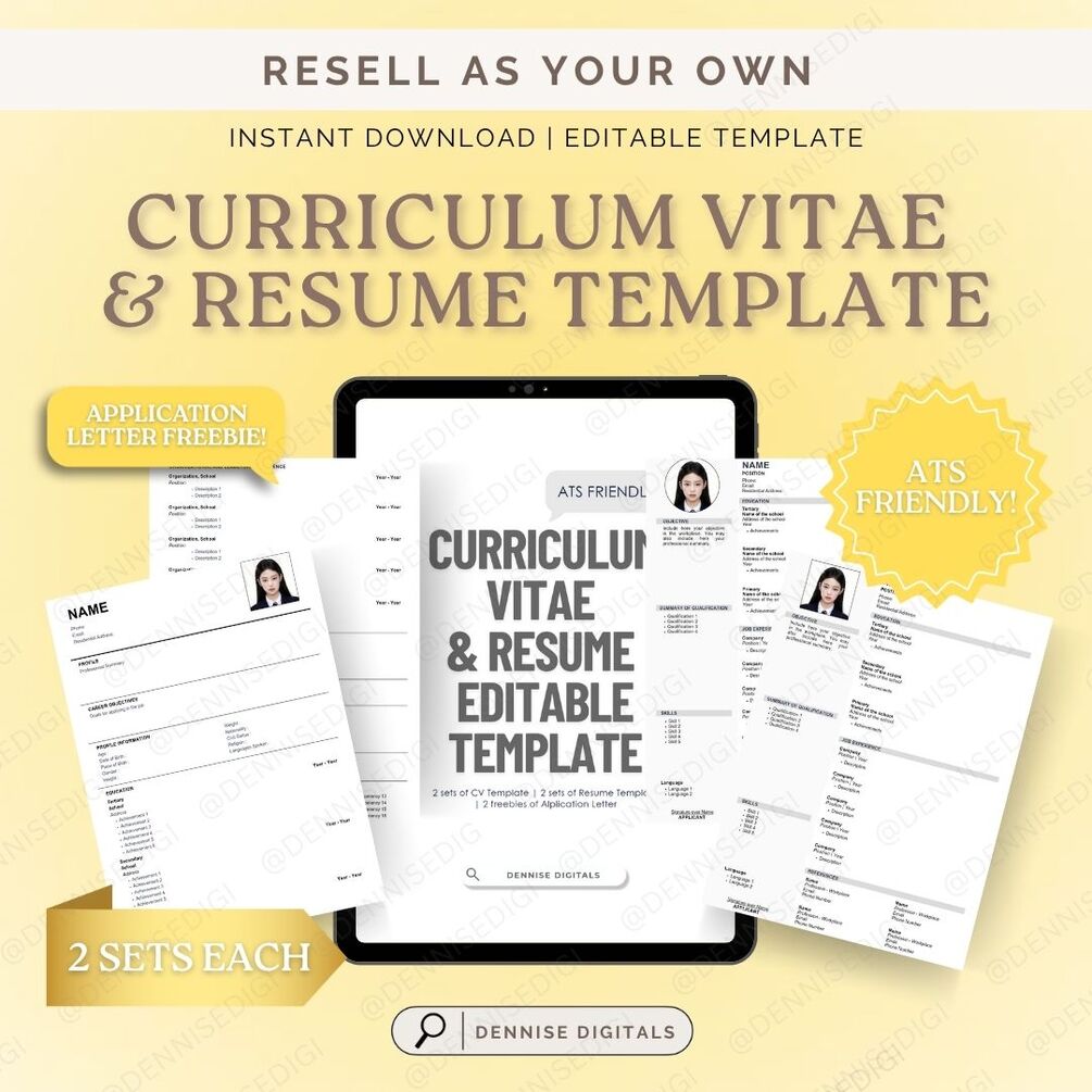 Professional Resume and Curriculum Vitae Editable Template | ATS Friendly | 4 Different Sets | PLR